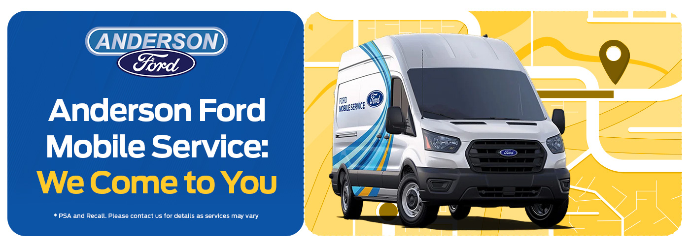 At Anderson Ford, we’re committed to making your driving experience as safe and convenient as possible. With our dedicated Mobile Service, you can have essential safety and recall services performed at your home or office—without having to visit our service center.